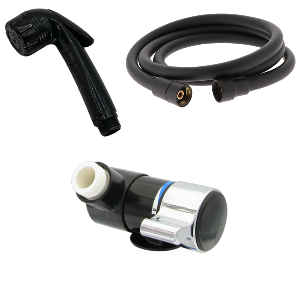 Camper Duschset 12-V – Hebeldusche + Duschanschluss mit Schlauch